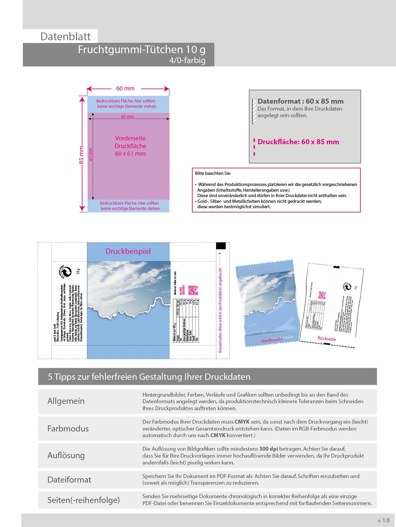 Fruchtgummi-Tütchen 10g (Form: Fußballfieber), 4/0 farbig einseitig bedruckt
